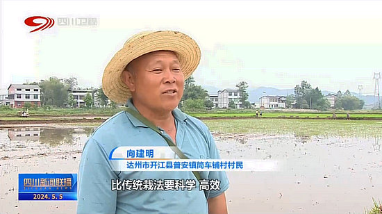 達州市開江縣普安鎮(zhèn)筒車鋪村村民 向建明:一天能夠插40多畝,比傳統(tǒng)栽法要科學(xué)、高效,生產(chǎn)能夠增產(chǎn)、增收。