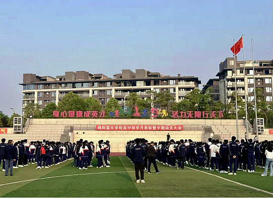 綿陽新聞網(wǎng)訊 為了表彰先進,樹立榜樣,鼓勵學生不斷進步,激發(fā)全體富高學子的積極性和上進心,提升整體學習氛圍和水平,4月26日,綿陽富樂學校高中部在中學部操場舉行了以“奮斗以恒 熱血筑夢”為主題的2024年春季學期學月表彰暨半期動員大會。本次大會由高二(2)班白鈺巍同學主持。
