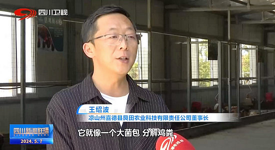 涼山州喜德縣艮田農(nóng)業(yè)科技有限責(zé)任公司董事長 王紹波:我們雞舍的墊料就是生物發(fā)酵床,里面放了微生物菌群和谷殼。它就像一個大菌包,分解雞糞,雞舍就不用經(jīng)常打掃了,也沒啥異味。然后這些墊料用完以后,不用扔掉,還可以作為農(nóng)作物的有機肥,實現(xiàn)循環(huán)利用。