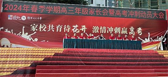 綿陽新聞網(wǎng)訊 4月27日上午,綿陽市開元中學召開了以“家校共育待花開,激情沖刺贏高考”為主題的2024年春高三年級家長會,高三全體師生參加,該校黨委書記王力,黨委副書記、校長敬正雄,副校長肖柯出席家長會。此次家長會分為集中家長會和分班家長會兩個階段進行。