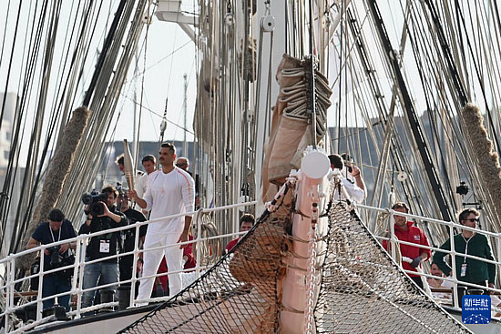 在“貝勒姆”號(hào)靠岸后,馬賽交響樂團(tuán)開始演奏巴黎奧運(yùn)會(huì)主題曲《巡游盛典》。約19時(shí)30分,2012年倫敦奧運(yùn)會(huì)游泳冠軍弗洛朗·馬諾杜作為在法國本土的第一棒火炬手,手持火炬從“貝勒姆”號(hào)上走下,象征著奧運(yùn)火種正式登陸法國。
