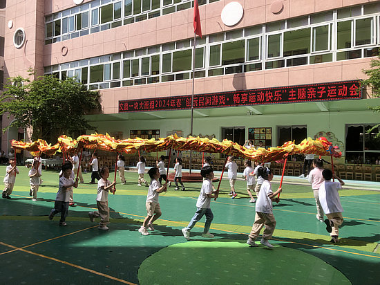 在熱鬧非凡的舞龍表演中,運(yùn)動(dòng)會(huì)拉開(kāi)帷幕,賽場(chǎng)上,大小運(yùn)動(dòng)員們?nèi)硇耐度搿⑴浜夏?、沖勁十足,展現(xiàn)出一幅拼搏進(jìn)取、歡樂(lè)和諧的場(chǎng)面。
