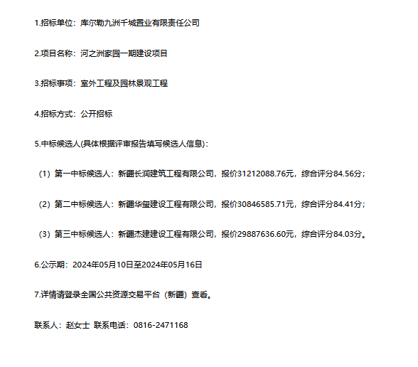 河之洲家園一期建設(shè)項目(室外工程及園林景觀工程)中標候選人公示