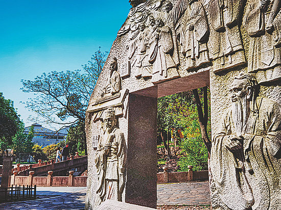 虞山文學(xué)橋旁的孔子和言子石刻像。新華每日電訊記者 朱旭東攝