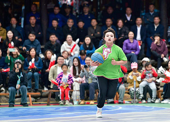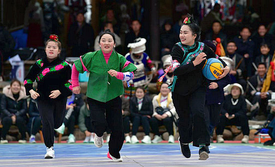 新華社貴陽5月10日電(記者鄭明鴻)今年春節(jié)以來,到貴州省雷山縣西江千戶苗寨游玩的游客,除了領(lǐng)略苗寨風光,還有機會現(xiàn)場觀看一場規(guī)則新穎、樂趣滿滿的籃球賽:女球員身著具有民族特色的服裝,抱著球全場奔襲,或自己進攻,或?qū)⑶騻鹘o機會更好的隊友……