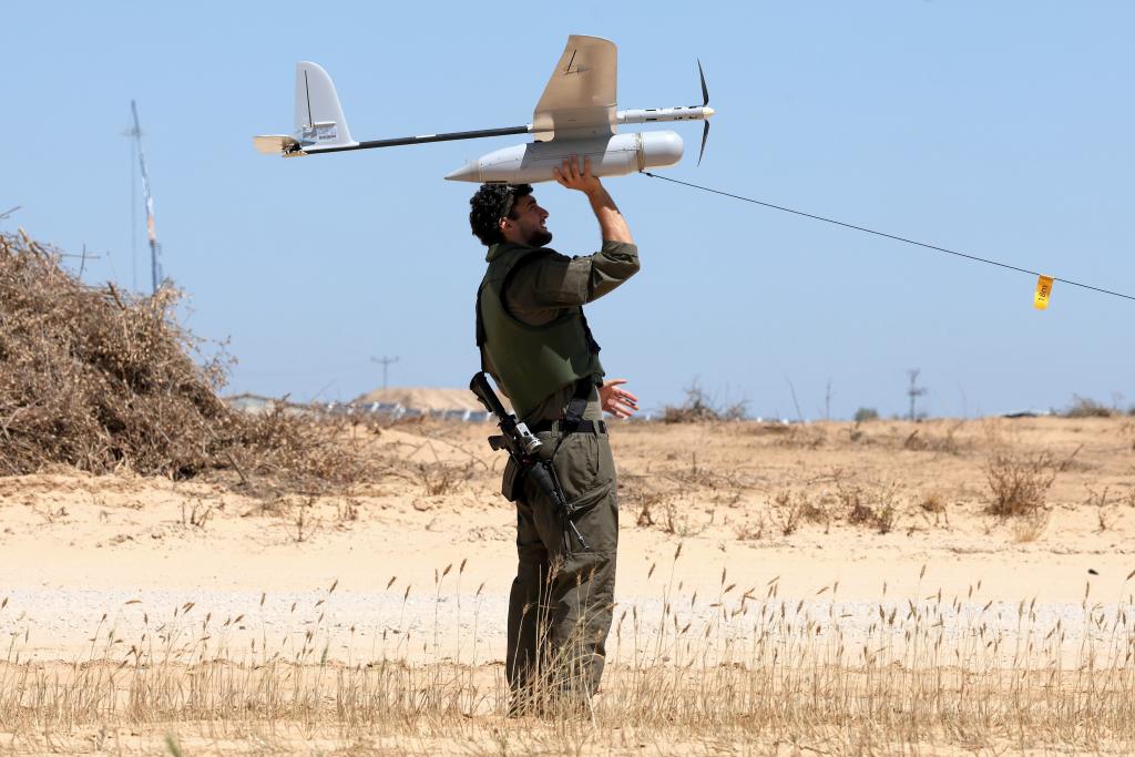 5月8日,在以色列南部凱雷姆沙洛姆口岸附近,一名以軍士兵準(zhǔn)備放飛無人機(jī)。新華社發(fā)(伊蘭·阿薩亞格攝/基尼圖片社)