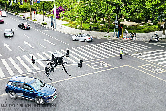 “前方黑色轎車請(qǐng)注意,你越線變道的違章行為已被記錄,請(qǐng)駕駛員遵守交通規(guī)則,文明出行!”5月11日下午,在九洲大道上,無(wú)人機(jī)正在按照設(shè)定路線進(jìn)行空巡,地面上所有信息都被機(jī)身配置的攝像頭完全“捕捉”,并實(shí)時(shí)傳回后臺(tái)。