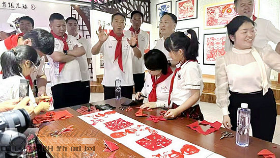 四川明星足球隊成員在七一小學感受特色剪紙文化