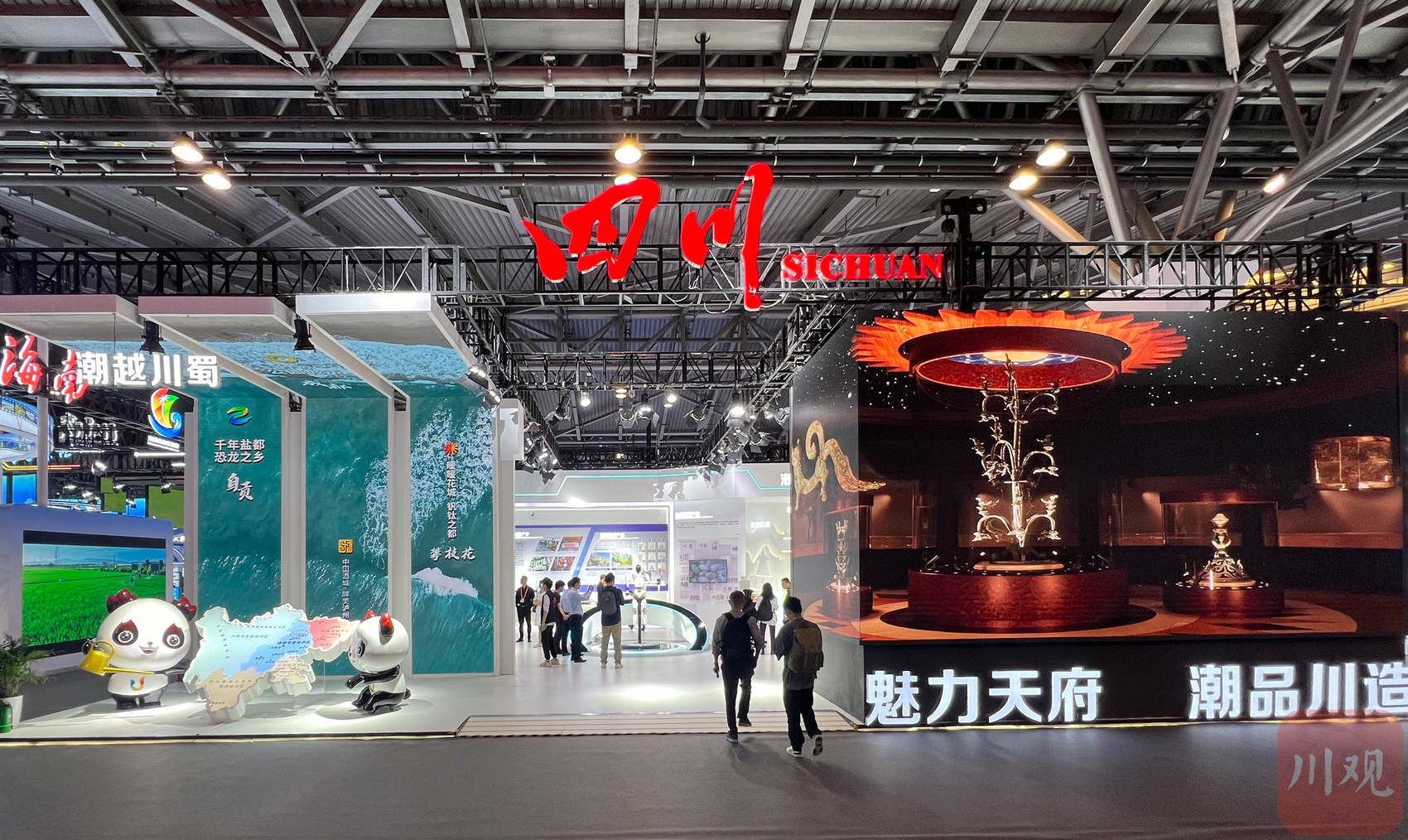 4個故事是局部甚至微觀層面,從整體看,四川21個市州全部在四川館集結(jié),從由三個豎長、彎折的超大LED屏構(gòu)成的“川”字裝置中,滾動展示城市形象。“一眼四川,半個中國”——四川在很多方面都是中國縮影,特別是近年來著力推動“五區(qū)共興”發(fā)展,在解決區(qū)域發(fā)展不均衡不充分等難題方面取得積極進(jìn)展。2023年,四川地區(qū)生產(chǎn)總值邁過6萬億元臺階,成都經(jīng)濟(jì)總量超過2.2萬億元,川北省域經(jīng)濟(jì)副中心綿陽GDP突破4000億元,川南省域經(jīng)濟(jì)副中心宜賓—瀘州組團(tuán)GDP超過6500億元,川東北省域經(jīng)濟(jì)副中心南充—達(dá)州組團(tuán)GDP近5400億元,呈現(xiàn)你追我趕、競相發(fā)展勢頭。