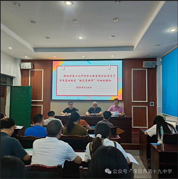 綿陽(yáng)新聞網(wǎng)訊 2024年5月16日,綿陽(yáng)市第十九中學(xué)召開(kāi)了學(xué)習(xí)貫徹基礎(chǔ)教育“規(guī)范管理年”行動(dòng)專(zhuān)題會(huì)議。