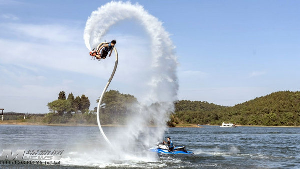 當(dāng)天,仙海湖水上活動也十分豐富,推出了尾波沖浪、水上飛人、摩托艇等水上表演活動,游客們近距離享受親水樂趣,浪花飛濺,激情四射,現(xiàn)場尖叫聲此起彼伏,氣氛非常活躍。
