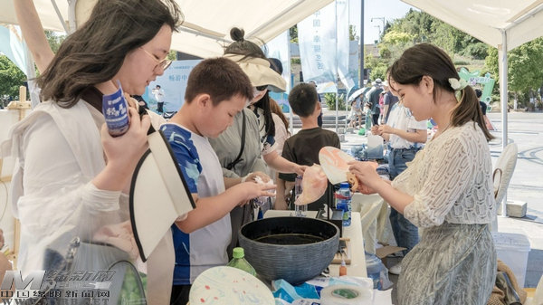 除了音樂會,非遺集市、糖畫、剪紙、水拓團(tuán)扇、草編、刺繡香囊等非遺體驗活動,也吸引了眾多游客。非遺集市匯聚了多位民間藝人,現(xiàn)場創(chuàng)作手工藝品。游客們更是躍躍欲試,在技藝大師的指導(dǎo)下親自上手制作,感受非遺的獨(dú)特魅力。
