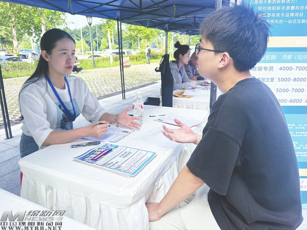 “同學,你可以掃一下二維碼,里面的崗位需求和福利待遇更詳細。”招聘現場人頭攢動,熱鬧非凡。