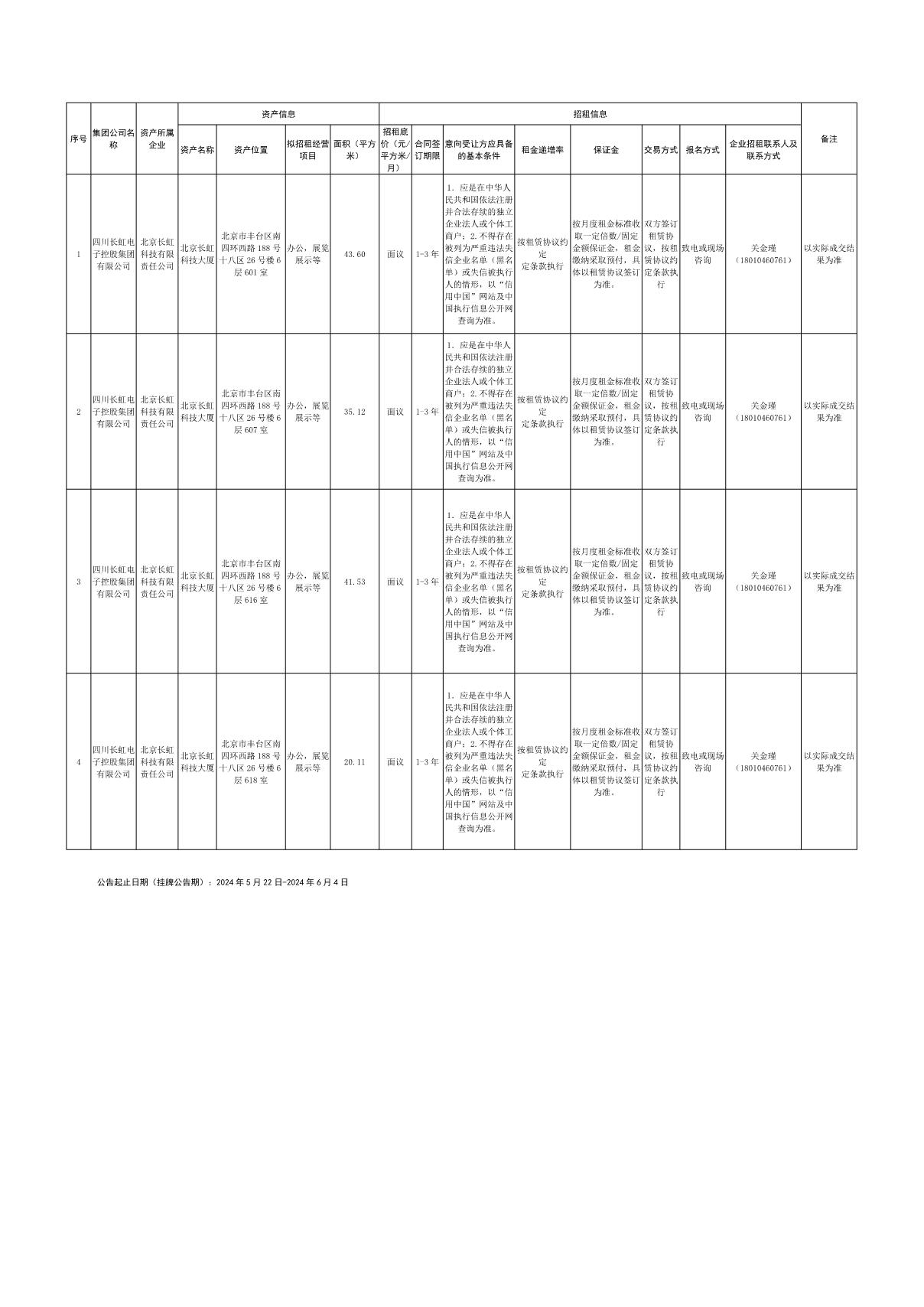 北京長虹科技有限責(zé)任公司資產(chǎn)出租公告