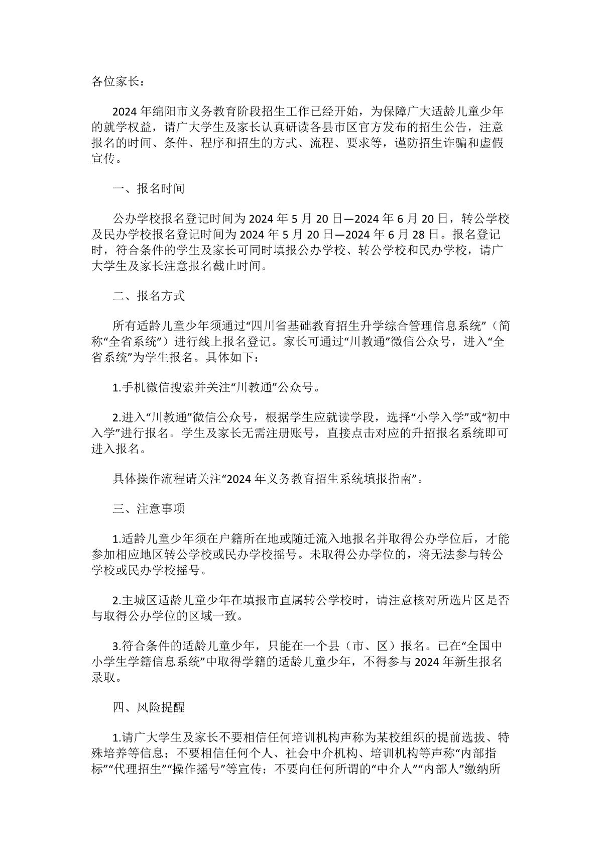 2024年綿陽(yáng)市義務(wù)教育階段招生報(bào)名溫馨提示