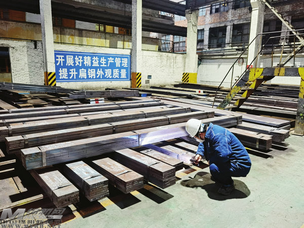 攀長特檢驗員正在檢測下線的扁鋼產(chǎn)品