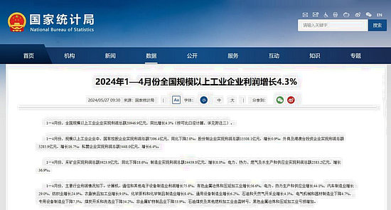 1—4月份,全國規(guī)模以上工業(yè)企業(yè)實現(xiàn)利潤總額20946.9億元,同比增長4.3%。
