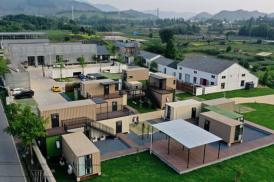 2023年6月1日,位于安吉縣溪龍鄉(xiāng)的“數(shù)字游民公社”,集裝箱成為住宿區(qū)一景。項(xiàng)飛 攝
