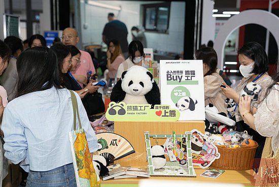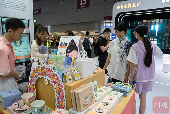 “我們有實(shí)體熊貓書店在成都,歡迎大家到成都來打卡參觀。”展區(qū)工作人員梁凌一邊介紹備受觀眾青睞的熊貓文創(chuàng)展品,一邊發(fā)出熱情邀請。