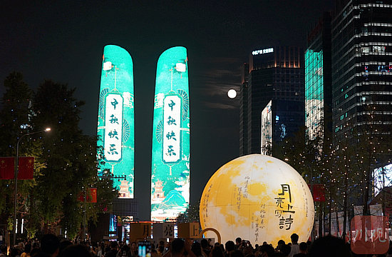 2023年中秋佳節(jié),成都高新區(qū)天府雙塔舉辦詩詞主題光影秀。四川在線記者 吳楓 攝