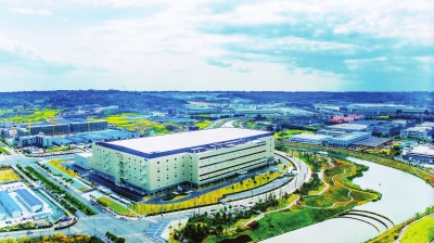 圍繞新型顯示等主導(dǎo)產(chǎn)業(yè),綿陽(yáng)高新區(qū)(科技城直管區(qū))不斷推動(dòng)產(chǎn)業(yè)鏈延鏈補(bǔ)鏈強(qiáng)鏈。圖為京東方新型顯示產(chǎn)業(yè)園。(劉軍 攝)