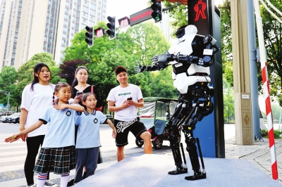 綿陽科技城新區(qū)園藝街與九洲大道交會(huì)處,說著一口四川方言的機(jī)器人化身交通引導(dǎo)員,倡導(dǎo)市民文明出行。