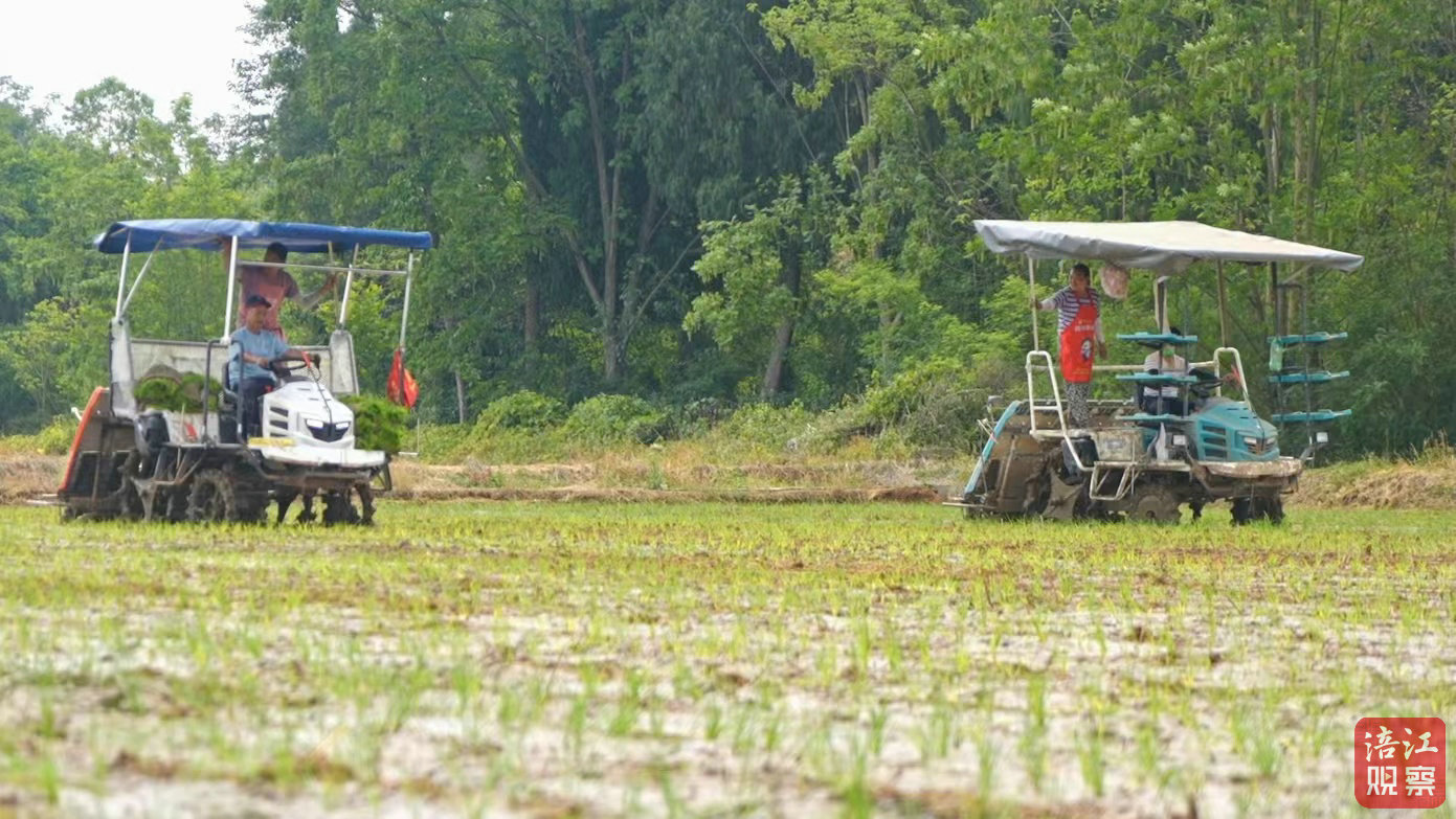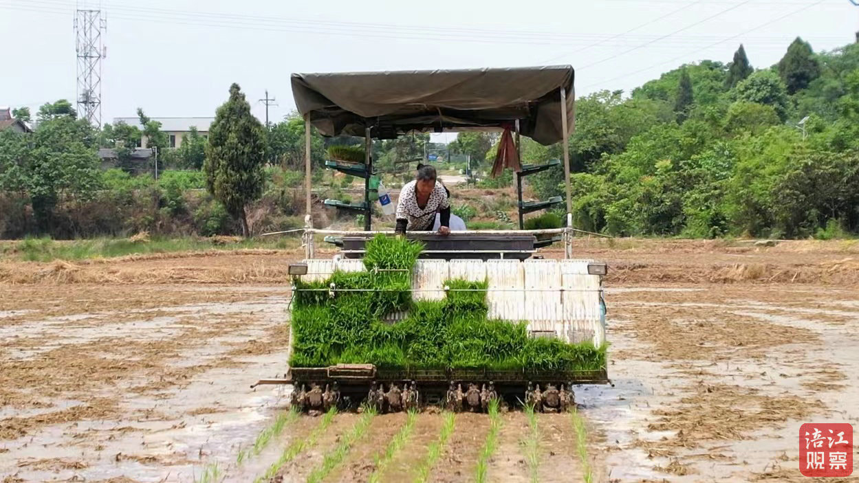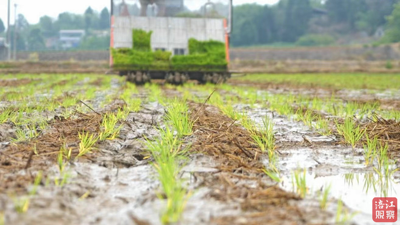“噠噠、噠噠……”伴隨著插秧機有節(jié)奏的聲響,一株株嫩綠的秧苗從插秧機的苗盤中依次滑落,機械化十足的插秧場景實力“搶鏡”,短短幾分鐘,插秧機便駛出幾百米遠,給田野鋪上了一層淡淡的新綠。