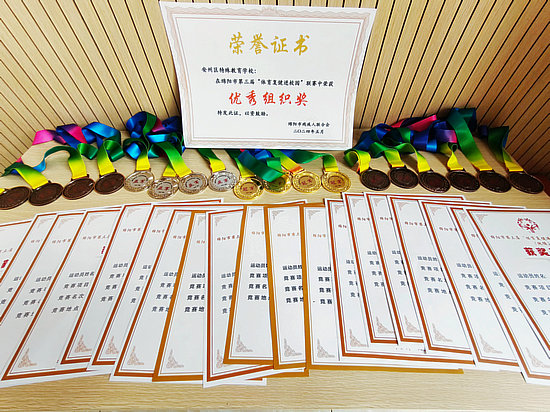 跳繩比賽獲得個(gè)人賽1金4銀3銅,榮獲團(tuán)體賽第三名;旱地冰壺比賽獲得個(gè)人賽3金1銅,榮獲團(tuán)體賽第三名。