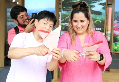 外國友人學剪紙