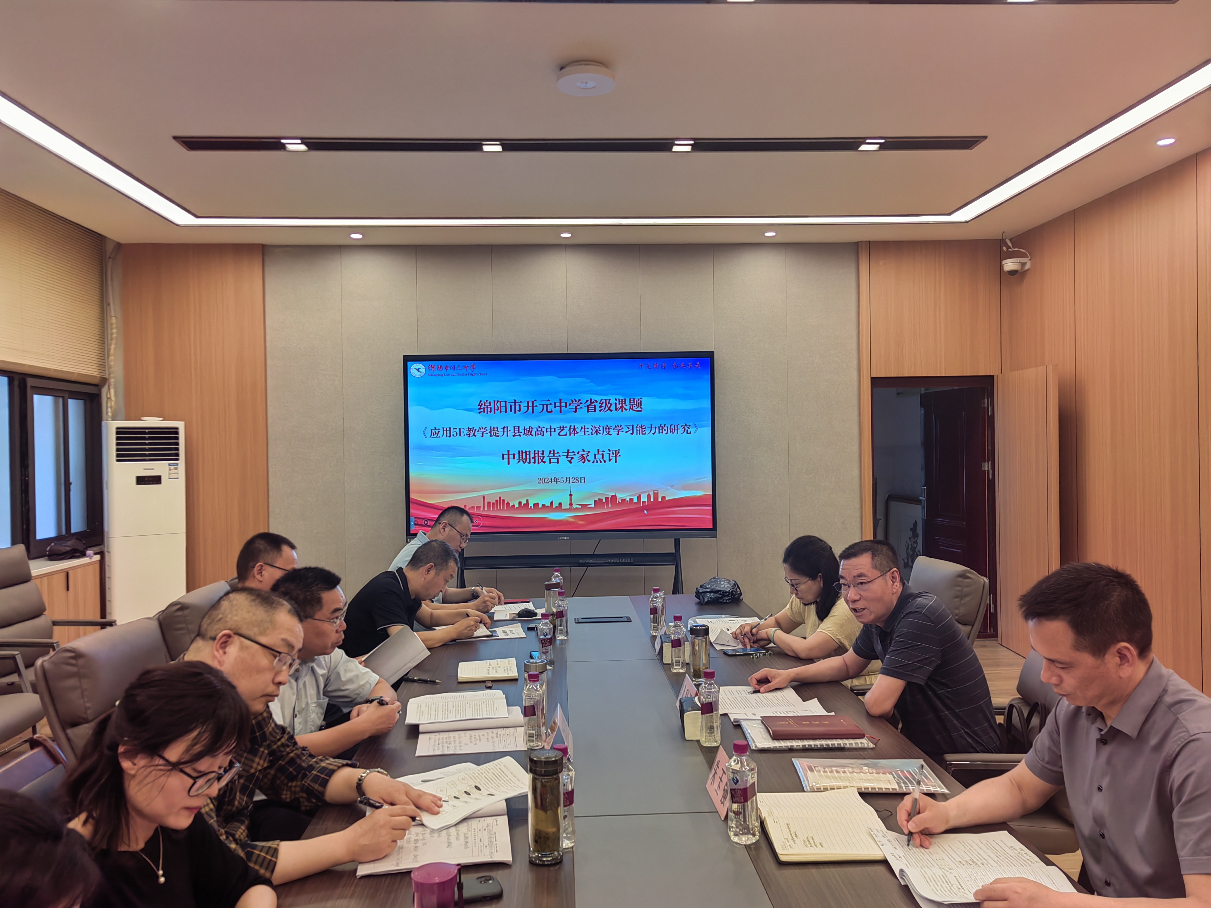 2024年5月28日下午,綿陽(yáng)市開(kāi)元中學(xué)省級(jí)課題《應(yīng)用5E教學(xué)提升縣域高中藝體生深度學(xué)習(xí)能力的研究》中期報(bào)告檢測(cè)工作在開(kāi)元中學(xué)如期進(jìn)行。游仙區(qū)教育體育局教育股股長(zhǎng)朱玉強(qiáng),游仙區(qū)教育研究室科研室主任何金芬,綿陽(yáng)一中校長(zhǎng)蒲彩軍等專家組成員,課題負(fù)責(zé)人開(kāi)元中學(xué)黨委書(shū)記王力,黨委副書(shū)記、校長(zhǎng)敬正雄,副校長(zhǎng)肖柯等課題組成員參加,開(kāi)元中學(xué)市、區(qū)級(jí)課題組也派代表列席了會(huì)議。會(huì)議由開(kāi)元中學(xué)教科室主任唐凌云主持。
