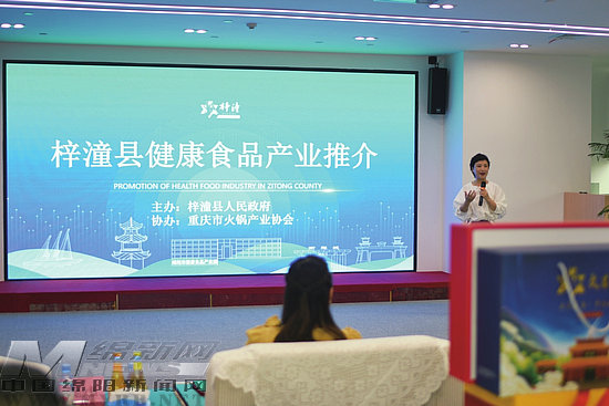 5月28日,在重慶環(huán)球金融中心大樓里,梓潼縣商務(wù)經(jīng)合局局長鄧?yán)蛘谶M(jìn)行梓潼縣健康食品產(chǎn)業(yè)推介,吸引了許多當(dāng)?shù)夭惋嬈髽I(yè)的濃厚興趣。