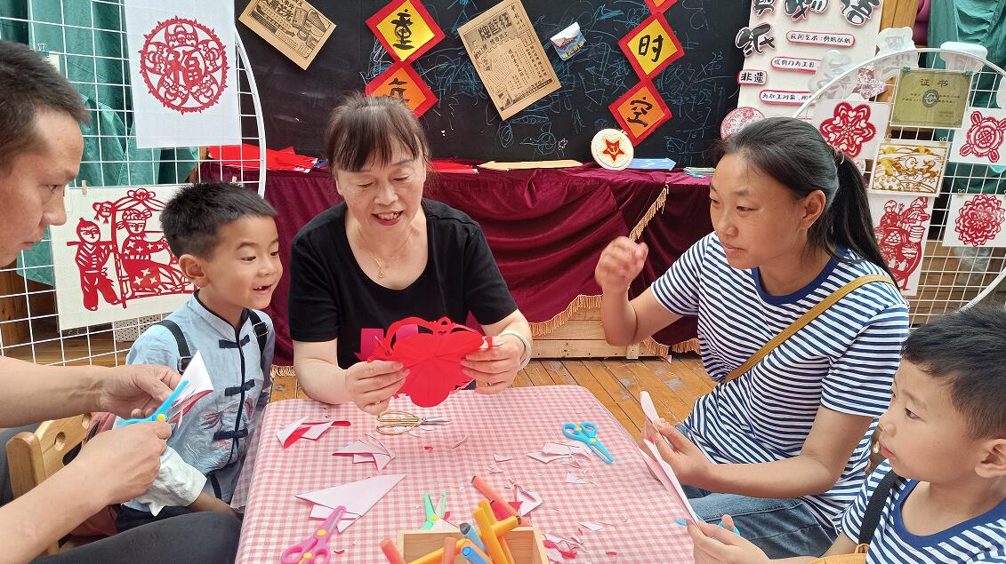 該園結(jié)合園所課程,將每年六月設(shè)定為游戲月,開展系列豐富多彩活動(dòng),本月活動(dòng)之一——“印象北街·年代秀”主題活動(dòng),設(shè)置了年代秀、暢游北街、非遺課堂等三個(gè)板塊。年代秀場(chǎng)上,家長(zhǎng)和孩子身著復(fù)古服裝從T臺(tái)緩緩走來,向我們展示著不同年代的風(fēng)采。暢游北街項(xiàng)目豐富多彩??梢宰灾剖止ぷ髌?,如制作風(fēng)車、發(fā)夾等,既培養(yǎng)孩子的動(dòng)手能力,讓家長(zhǎng)和孩子一起體驗(yàn)生活,增進(jìn)親子感情,共享成長(zhǎng)時(shí)光??梢酝?zhèn)鹘y(tǒng)游戲,讓家長(zhǎng)回到“挑棍兒”“打盒子”“打彈珠”“踢毽子”的童年,讓孩子體驗(yàn)爸爸媽媽小時(shí)候的游戲。可以品嘗美味的“冰糖葫蘆”“夏日果汁”“水果繽紛”,大家一起感受六月獨(dú)有的甜蜜。最吸引家長(zhǎng)和孩子的是“非遺課堂”,“剪紙”是用剪刀在紙上剪刻花紋,裝點(diǎn)生活的民間藝術(shù),訓(xùn)練了孩子們的精細(xì)動(dòng)作,提高了他們欣賞美創(chuàng)造美的能力。最讓孩子駐足流連的是糖畫的制作過程,只見糖漿熔化后,在石板上飛快揮灑、繪制,瞬間凝固成形,綻放出別樣的光彩。