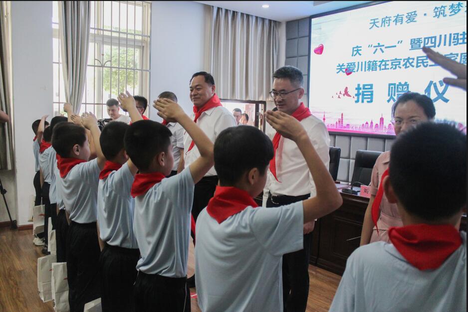 5月30日,四川省駐京辦黨組成員、省駐京機構(gòu)黨委書記李奧博一行到梓潼縣許州鎮(zhèn)小學校,開展了以“天府有愛·筑夢未來”為主題的關(guān)愛川籍在京農(nóng)民工家庭留守兒童活動。梓潼縣委書記劉強、市駐京辦黨組成員、副主任張劍、梓潼縣委常委、縣政府副縣長楊敏、梓潼縣人社局黨組書記、局長范曉彬、梓潼縣教體局黨組書記、局長安顯奎、許州鎮(zhèn)黨委書記嚴彬賓等一同出席此次活動。