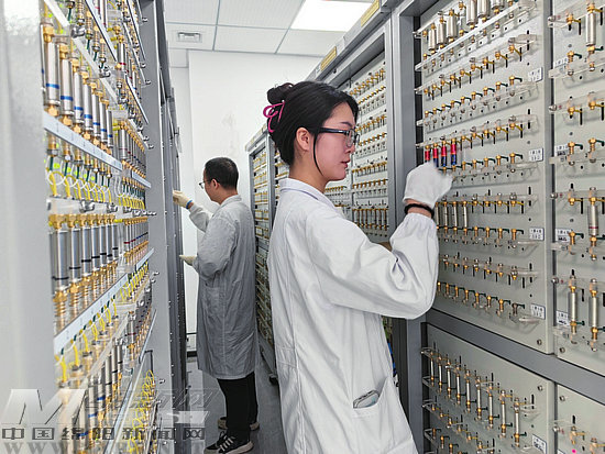 工作人員對堿錳電池進行測試