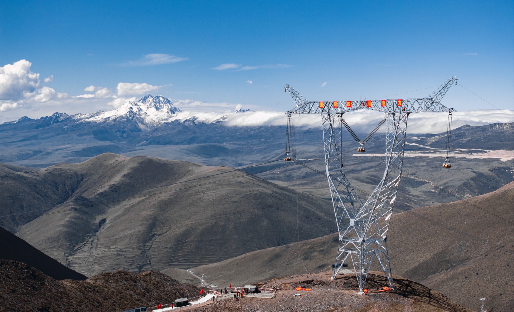 正在建設的川渝1000千伏特高壓交流輸電工程,是我國特高壓重點工程,也是海拔最高的交流特高壓工程。在整個工程中,難度最大的環(huán)節(jié)是高空架線。近日,川渝特高壓輸電工程翻越甘孜折多山,國內(nèi)首例十分裂輸電導線穿過1號標段難度最大的一座鐵塔,成功展放。