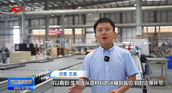 記者 王星:這里是位于成都市郫都區(qū)德貝實業(yè)的生產車間,可以看到,生產線從原材料的運輸到裁切、到封邊等環(huán)節(jié),基本實現(xiàn)了全流程的自動化,這樣一條年產能1。5萬套的定制板材生產線,僅需要10個人左右就可以完成。