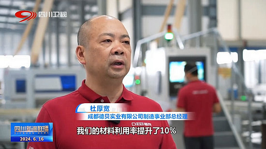 成都德貝實業(yè)有限公司制造事業(yè)部總經理 杜厚寬:智能設備投用后,我們的材料利用率提升了10%,單位產品成本降低了20%,而且產線質控更加精確,生產效率提升了80%,今年我們還計劃投入600萬元,把鉆孔、包裝等環(huán)節(jié)進行智能化產線改造,屆時產品的生產周期還將再縮短2天。
