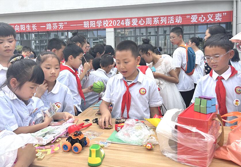 作為朝陽(yáng)學(xué)校“愛(ài)心周”系列活動(dòng)之一的“愛(ài)心義賣(mài)”,活動(dòng)的構(gòu)思、策劃、組織、選購(gòu)、任務(wù)分配等工作均由學(xué)生獨(dú)立完成,較好地鍛煉了學(xué)生的團(tuán)隊(duì)協(xié)作及社會(huì)交際能力,同時(shí)也為孩子幼小的心靈種下一顆“愛(ài)”的種子。