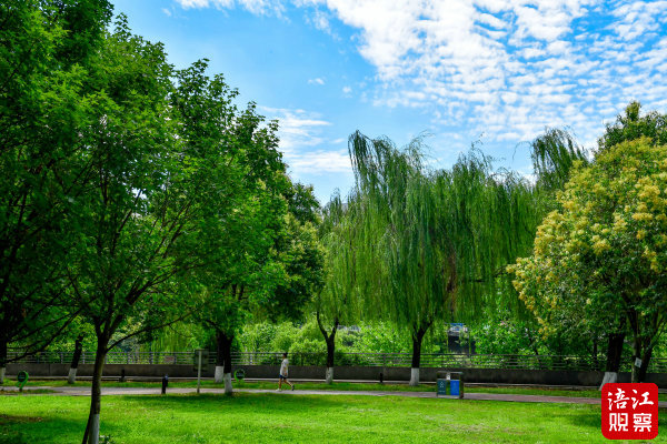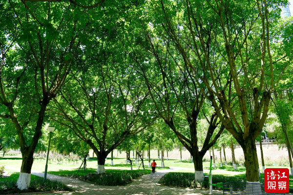 6月17日,記者在綿陽(yáng)城區(qū)的涪濱路、青年廣場(chǎng)、五一廣場(chǎng)河堤等處看到,松樹、樟樹、欒樹等各種樹木,樹冠茂盛,濃蔭蔽日,猶如一把巨大的“遮陽(yáng)傘”,為市民遮住了熾熱的陽(yáng)光。