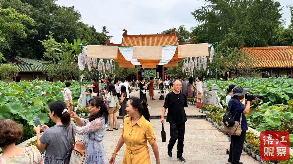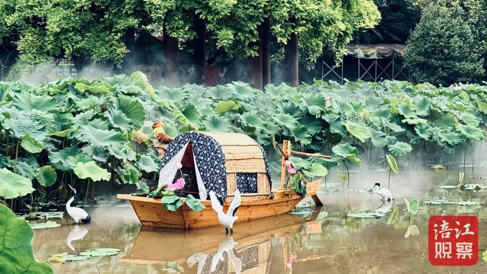 環(huán)湖線更是串聯(lián)了“畫中游”“剪荷橋”“晚回舟”“翰墨香”“半遮面”“戴月歸”等與荷景相得益彰的主題造景,展區(qū)內(nèi)風(fēng)鈴清脆、云霧繚繞,輔以數(shù)個(gè)互動(dòng)框景,讓市民游客在接天蓮葉中一秒入畫,留下夏天的美好回憶。