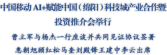 隨后,在與會(huì)領(lǐng)導(dǎo)共同見證下,綿陽市分別與中國移動(dòng)集團(tuán)四川公司、中國移動(dòng)集團(tuán)終端公司、中國移動(dòng)集團(tuán)上海產(chǎn)業(yè)研究院簽署戰(zhàn)略合作協(xié)議。座談會(huì)前,曹立軍、楊杰等一同前往部分展位,參觀了解綿陽人工智能產(chǎn)業(yè)發(fā)展以及中國移動(dòng)AI+賦能綿陽產(chǎn)業(yè)發(fā)展等情況。