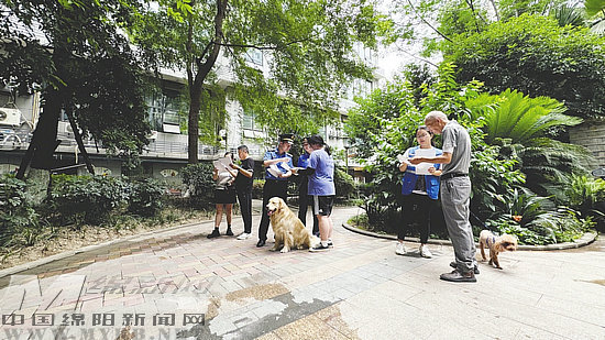 執(zhí)法人員在小區(qū)宣傳文明養(yǎng)犬