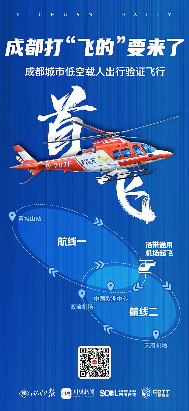 兩條航線的開啟,標志著成都市城市低空載人出行驗證飛行“首飛”順利完成。