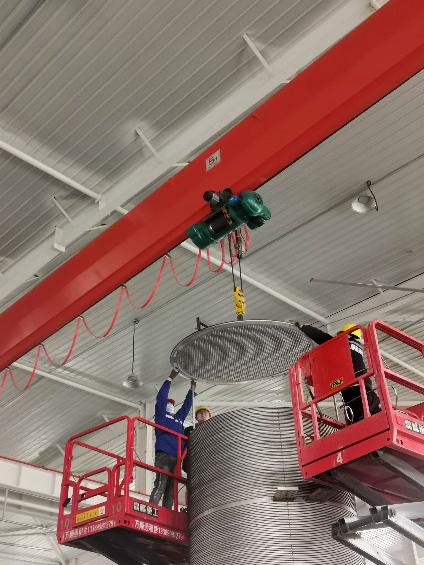 亞聯(lián)氫能天津工廠,水電解槽設(shè)備正在進(jìn)行裝配