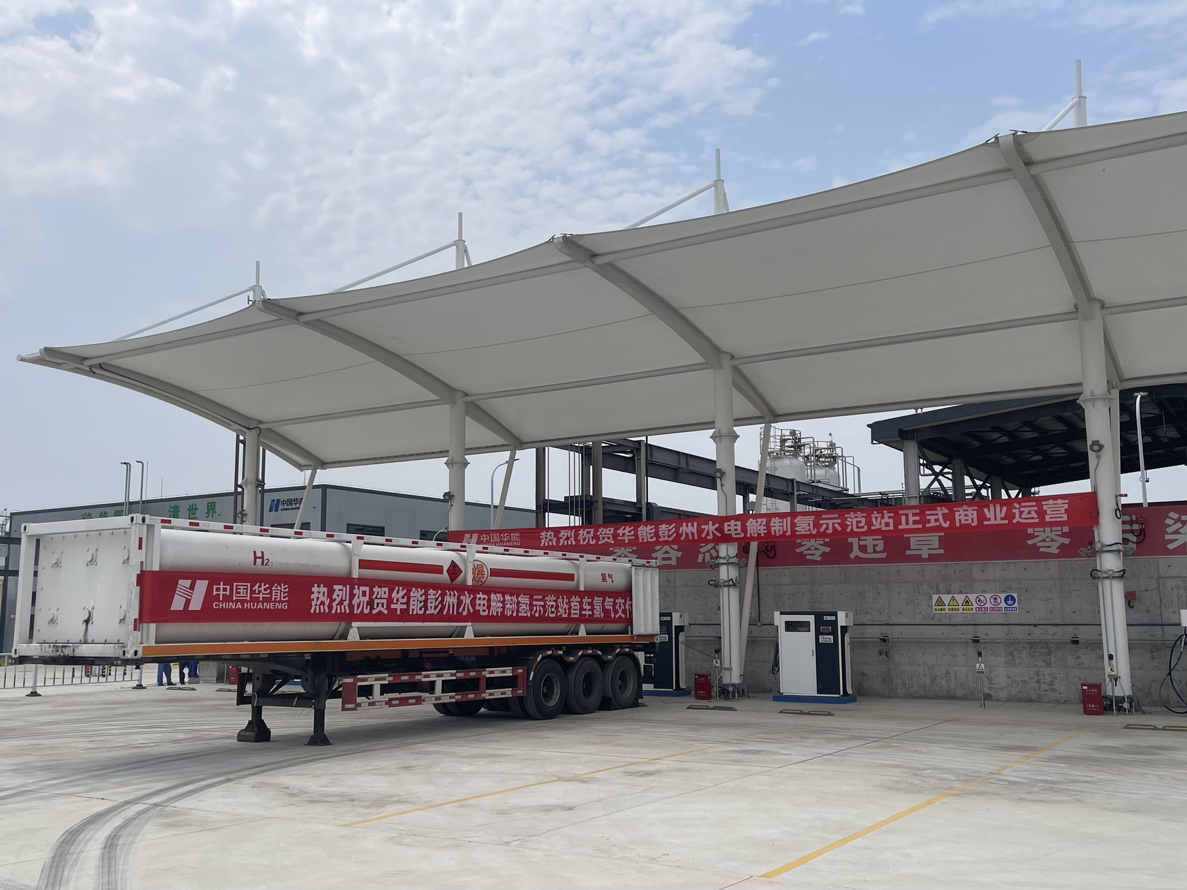 6月12日,位于成都彭州市“成都?xì)涔?rdquo;的華能彭州水電解制氫示范站成功售出第一車綠氫,標(biāo)志著四川首個大規(guī)模水電解制氫項目正式投入運營。