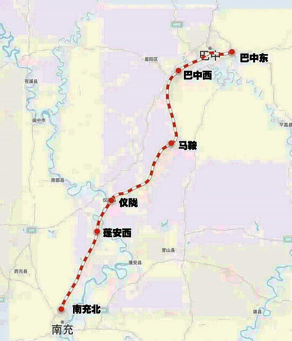 巴南高鐵是四川首條由地方主導(dǎo)建設(shè)的高速鐵路,由蜀道集團和南充市、巴中市人民政府共同籌資建設(shè),納入了國家《中長期鐵路網(wǎng)規(guī)劃》和《成渝城市群城際鐵路網(wǎng)規(guī)劃》。線路起自巴中東站,向西經(jīng)巴中市、南充市,接入南充北站,線路全長149公里,設(shè)計時速250公里。全線共設(shè)車站6座,分別為南充北站、蓬安西站、儀隴站、馬鞍站、巴中西站和巴中東站,其中南充北站為既有車站,其余為新建車站。