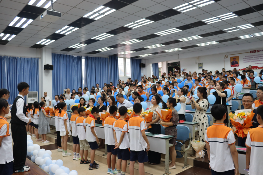 活動(dòng)伊始,該校黨支部書記、校長(zhǎng)郭紀(jì)太在畢業(yè)典禮上致辭。他首先向家長(zhǎng)和畢業(yè)生們匯報(bào)學(xué)校一年來(lái)取得的可喜成績(jī),并且祝福畢業(yè)生們揚(yáng)帆遠(yuǎn)航,健康、快樂成長(zhǎng)。希望孩子們?cè)谛聦W(xué)校保持學(xué)習(xí)興趣和熱情,學(xué)會(huì)獨(dú)立與自主管理,珍惜同學(xué)友誼,關(guān)愛他人。他的話像是一抹朝陽(yáng),給予同學(xué)們前進(jìn)的動(dòng)力。