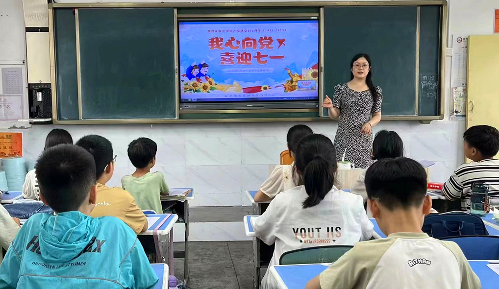 活動伊始,該校黨支部和德育處根據(jù)學生的年齡特點,緊緊圍繞“黨旗飄揚 引領成長”主題,通過在一年級學生中開展主題繪畫活動,將孩子們對黨的崇敬之情,濃縮在一張張主題突出,色彩鮮明的繪畫作品之中,充分表達了孩子們對黨的真摯祝福和對祖國的無限熱愛;在二年級學生中,通過觀看建黨愛黨題材的影視片,使孩子們接受了一次思想的洗禮,對學生進行了一次愛國主義思想教育;三、四年級則是以開展“黨旗飄揚 引領成長”主題班會為主,通過講黨史、講革命先列的英雄事跡,展示一幅幅歷史圖片,將大家?guī)Щ氐搅四嵌尾憠验煹母锩鼩q月。使孩子們知道了今天的幸福生活來之不易。他們紛紛表示要珍惜現(xiàn)在的幸福時光,好好學習,長大也要報效祖國,成為國家的棟梁之才;五年級的孩子們紛紛以“黨旗飄揚 引領成長”為主題,利用豐富的想象,深沉的情感和獨到的審美,創(chuàng)作出一張張精美而且主題鮮明的手抄報作品。鐵錘鐮刀、黨旗飄飄,聽黨話、感黨恩、一心跟黨走;六年級同學在“黨旗飄揚 引領成長”主題征文活動中,用質樸的語言表達了對中國共產(chǎn)黨百年奮斗歷程的敬仰,六.五班柏沂辛同學在文中寫道:“我們將永遠銘記黨的恩情,永遠熱愛黨,永遠跟黨走!”