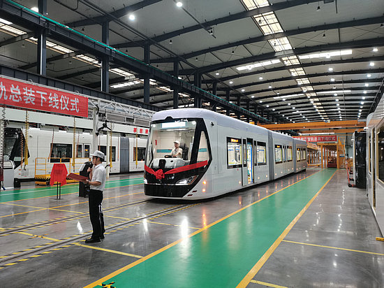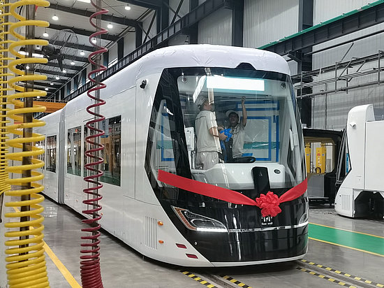 7月1日,位于宜賓三江新區(qū)的中車鐵投公司智軌產(chǎn)業(yè)基地內(nèi),隨著一聲汽笛轟鳴,國內(nèi)首列氫能源智軌電車正式裝配下線。這輛電車將于今年8月在宜賓主城區(qū)至南溪區(qū)的智軌T4線投入使用。