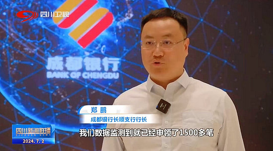 成都銀行長順支行行長 鄭鵬:半個(gè)小時(shí)以內(nèi),我們數(shù)據(jù)監(jiān)測到就已經(jīng)申領(lǐng)了1500多筆,占用額度592.7萬元,占總額度比例超過了10%。